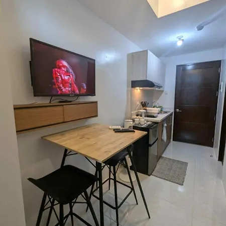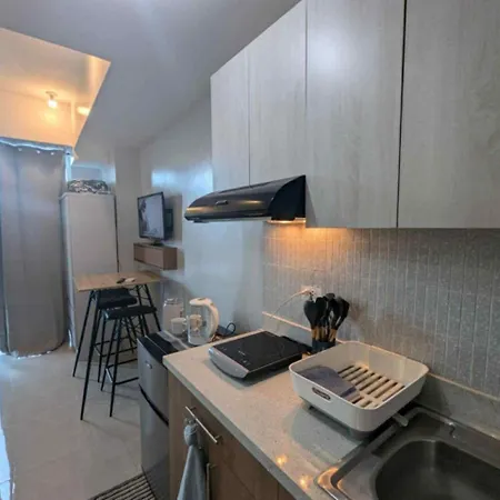 Trendy Studio In Mivela Garden Residences erbjuder ett utrustat kök utrustat med kylskåp och köksredskap. Busshållplatsen Jeepney är belägen invid lägenheten.